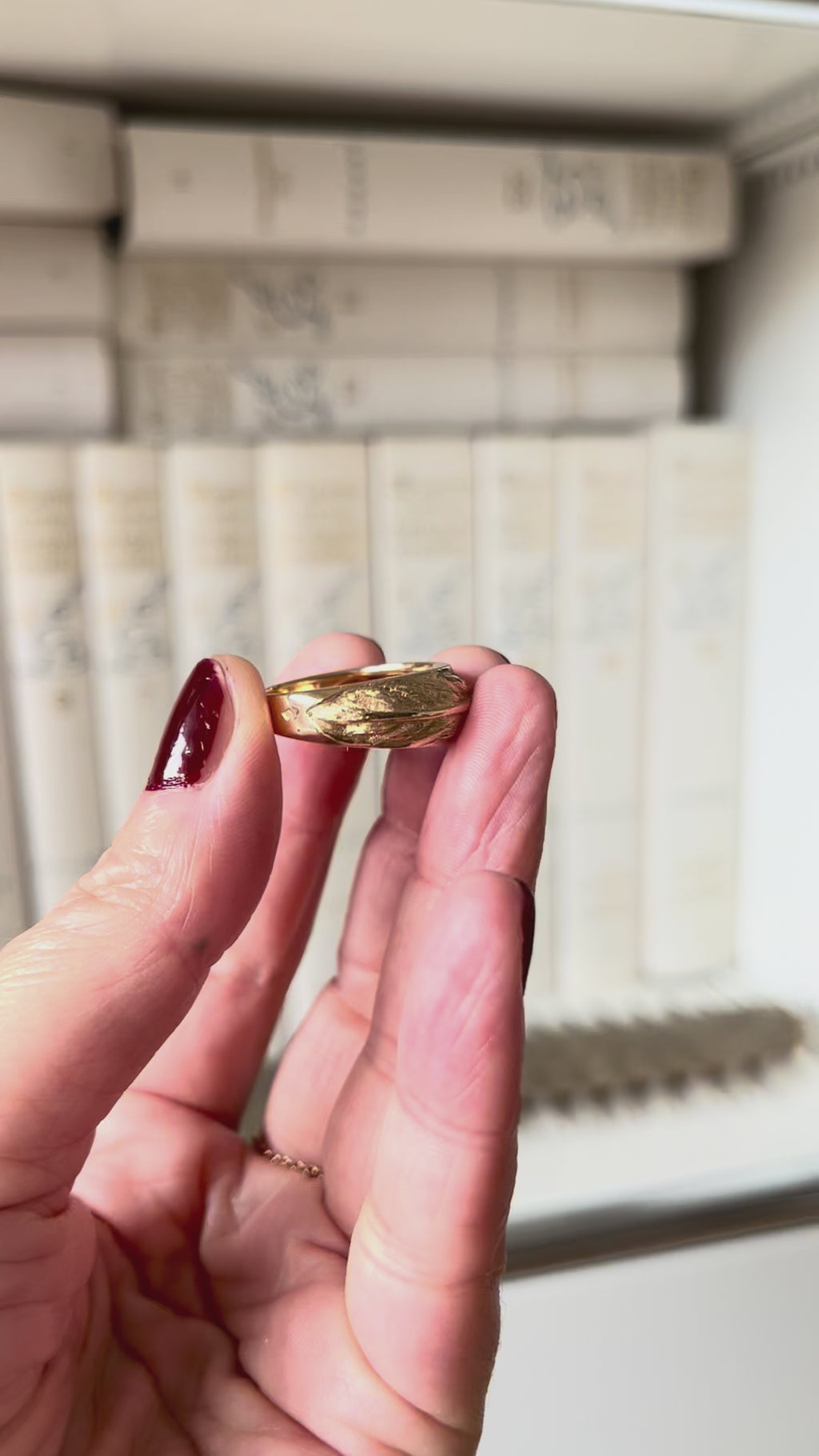 The Eve ring in 18 kt gold is the little sister of the much loved Josephine ring! More voluminous, its degraded shape allows an ultra comfortable wear. Inspired by nature and vegetal motifs such as olive and laurel leaf, it exudes a reminiscence of old rings. The upper part is fully carved and decorated with leaves. It is worn alone in 18 ct gold, and can be mixed with other rings. Variations in unique pieces and small editions are also available. Crafted in 18k yellow, rose, champagne, white and gray palladium gold, your choice.